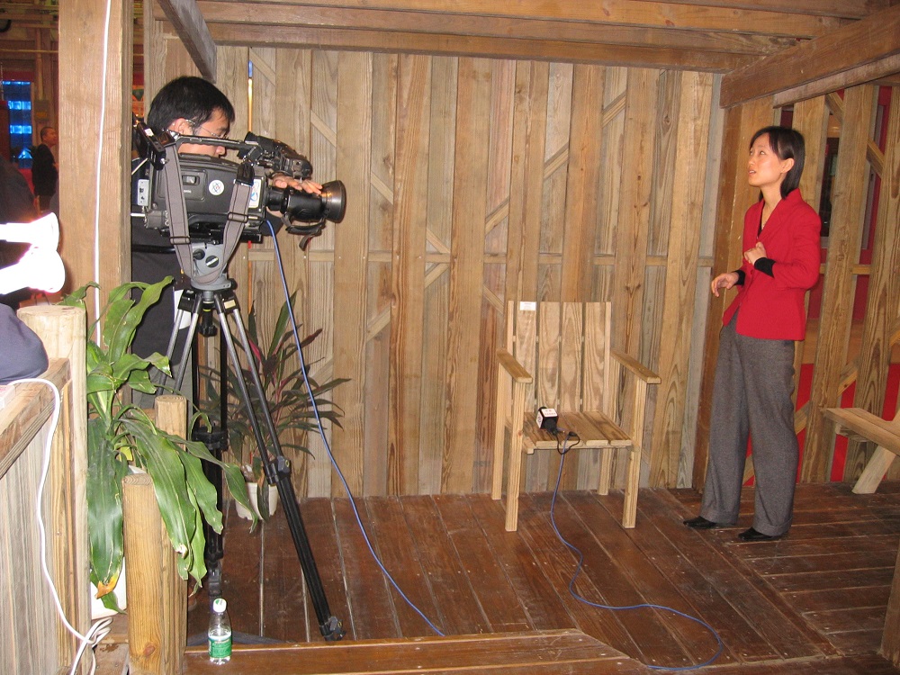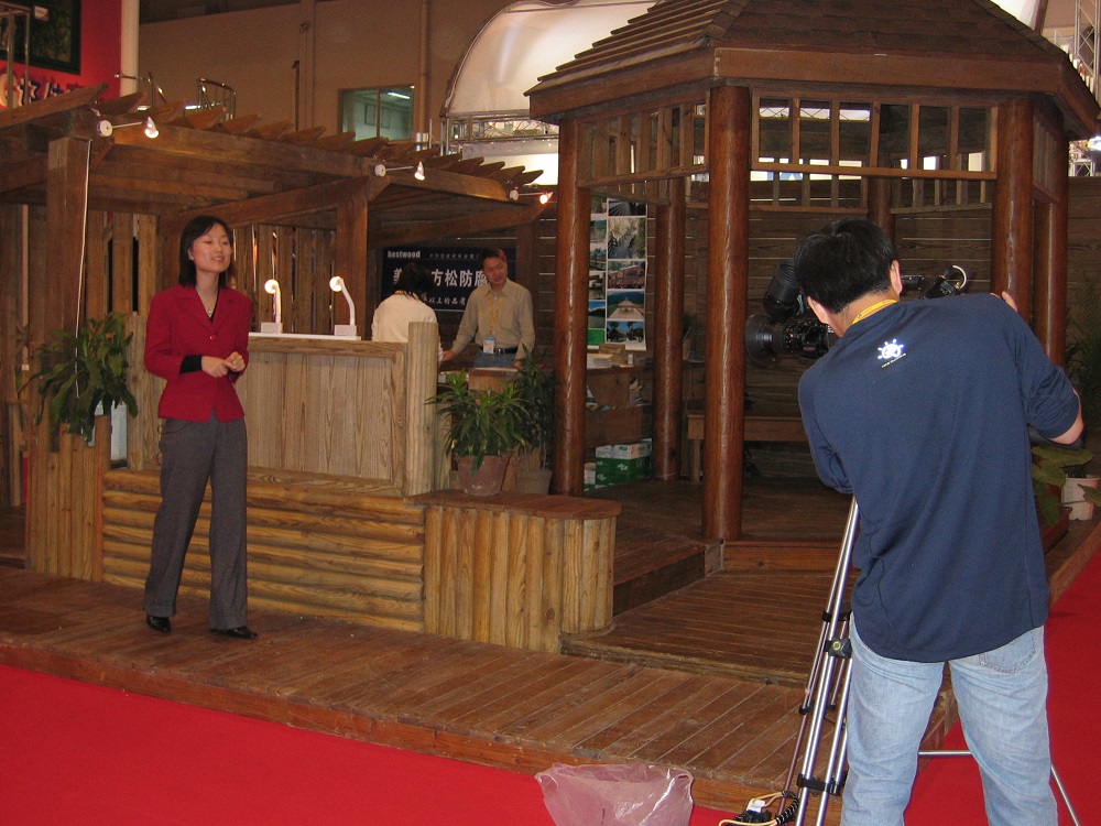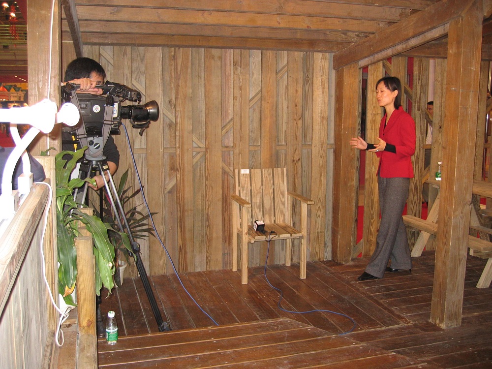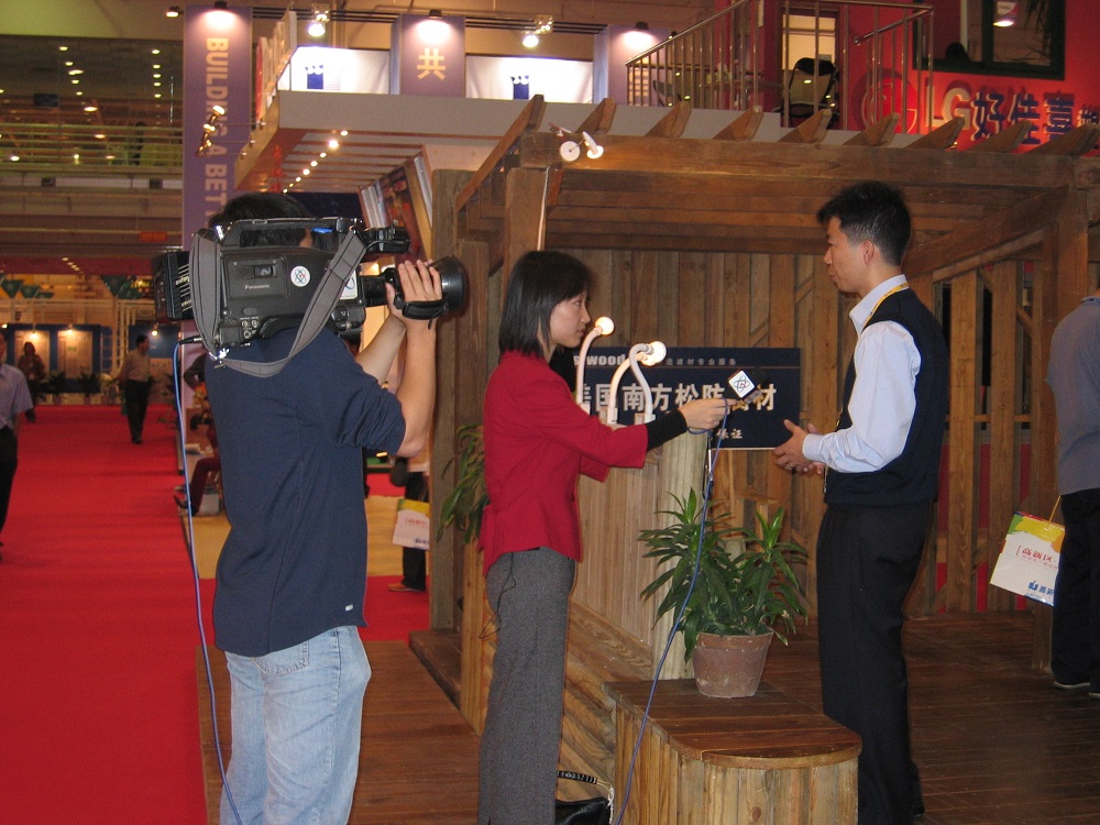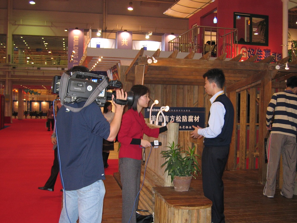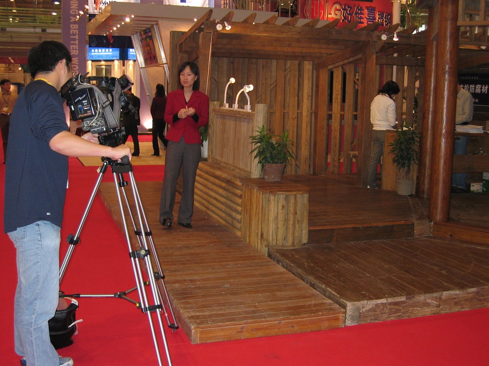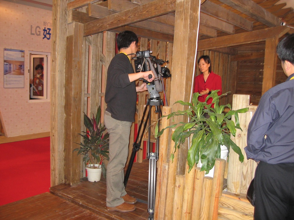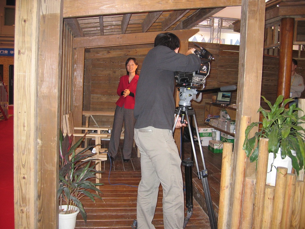 2003年住交會,接受中央電視臺采訪